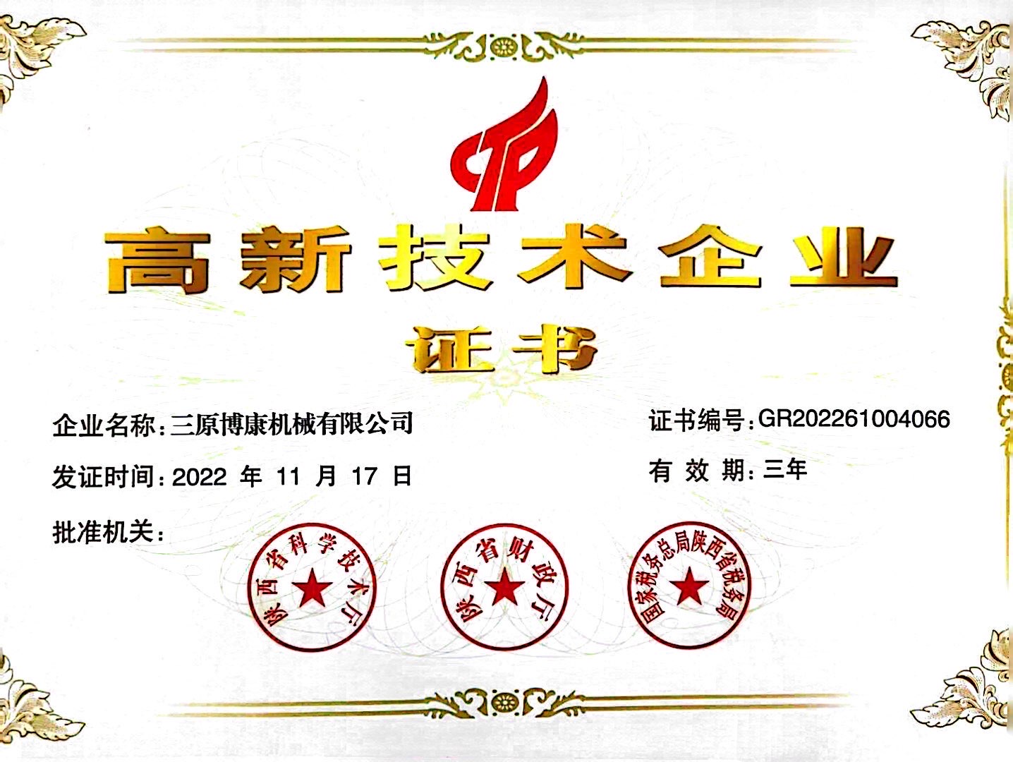 高新技術企業(yè)證書
